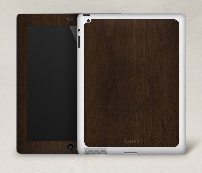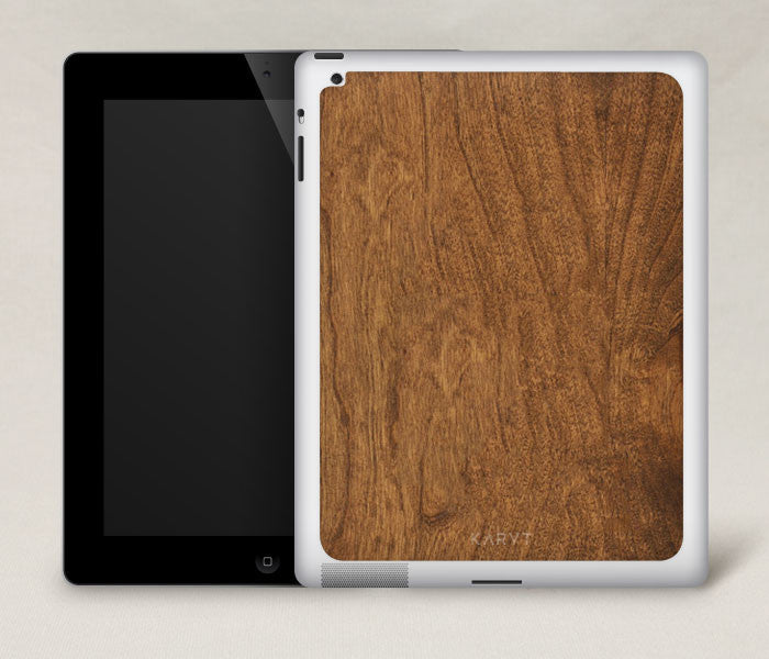 This is our gorgeous Walnut iPad skin. This skin offers an incredible look and feel to your iPad and offers a great deal of extra grip! Generally straight grained with a moderately coarse, uniform texture. Rich dark brown heartwood. Moderately hard, strong, and stiff, with good decay resistance and dimensional stability. Walnut's straight laced demeanor is deceiving because he's a dirty old wildman at heart. Walnut has been the timber choice for gun makers for centuries, due to its resilience to compression along the grain. It's a wonder wood-making it a perfect choice for a mac skin.